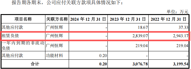 截至2022年和2023年末,慧谷新材对广州恒辉存在未结清的租赁款项,金额分别达到2839.07万元和2943.17万元。