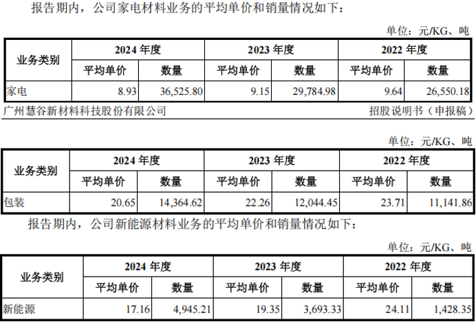 然而剥开这层光鲜外衣,发现其增长很大程度上是靠“以价换量”实现的。2022-2024年间,慧谷新材的主要产品价格全线下降。