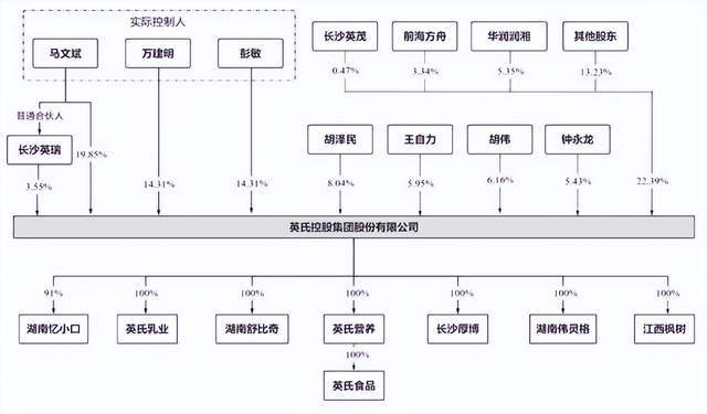 截至本次递表前,英氏控股并无控股股东,实际控制人为马文斌、万建明和彭敏,三人分别直接持股19.85%、14.31%和14.31%,马文斌通过长沙英瑞间接持股3.55%,合计持有英氏控股52.02%的股份,并签署了《一致行动协议》。