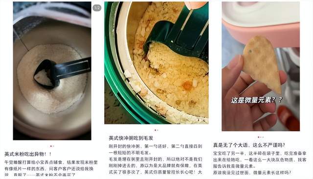 社交平台上,多名消费者发帖表示自己购买的英氏产品中出现毛发、虫子、不明颗粒物等异物,且涉及米粉、米饼、快冲粥、磨牙棒等多个婴幼儿食用品类,甚至有部分家长反映孩子食用后出现了身体不适的情况。