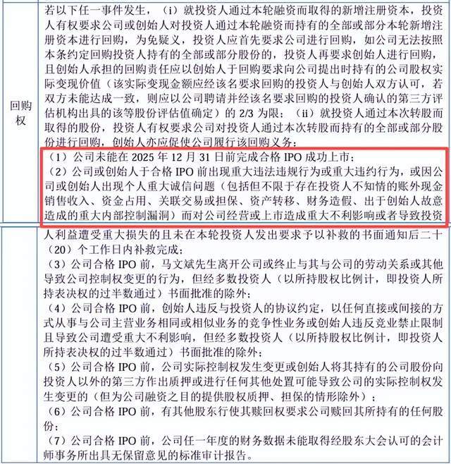 相关条款明确规定,如果英氏控股未能在2025年12月31日前完成合格IPO成功上市,或其在合格IPO前出现重大违法违规、违约行为或个人诚信问题,对其经营或上市造成重大不利影响,上述投资人有权要求英氏控股进行股份回购。