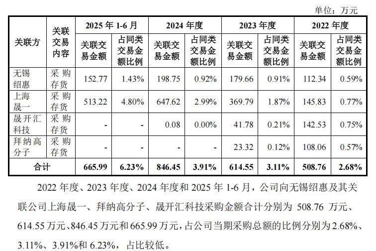 另一关注焦点涉及创达新材与无锡绍惠之间的关系演变。无锡绍惠原为创达新材的全资子公司,在数次股权转让后,创达新材持股比例降至4.99%,表面上已完成控制权退出。然而,双方业务往来并未随之减少,反而持续增长,2022年至2024年创达新材向无锡绍惠的采购额逐年上升,使其成为公司重要供应商之一,形成“去而不离”的局面。尽管公司解释采购增长符合业务发展需要且交易价格公允,但由于双方存在重叠客户、同址经营等情况,市场对其是否存在潜在利益输送或资源混同仍存疑虑,监管层也在问询中重点关注了相关交易的商业实质。
