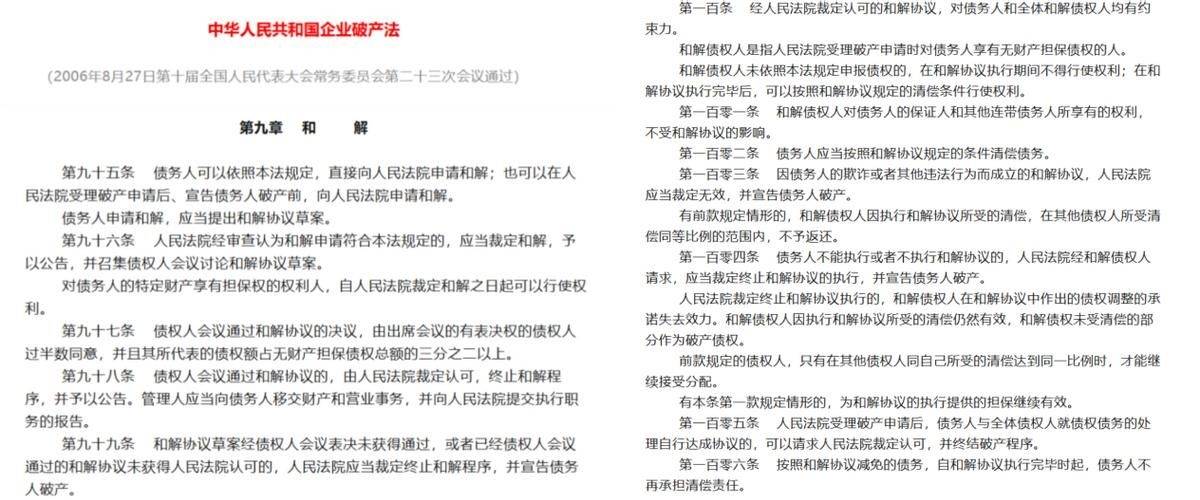 《破产法》第九章‘和解’内容截图(方岩制图)