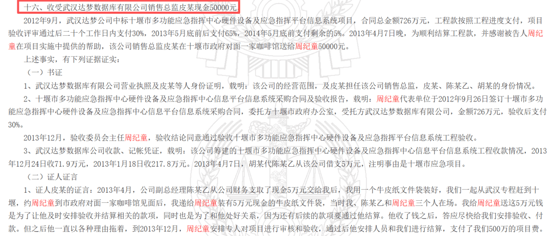 根据皮某描述,该5万元是公司副总经理陈某乙从财务支取,送钱时副总经理陈某乙也在现场,这也意味着,此次行贿也得到了达梦数据高管的认可。