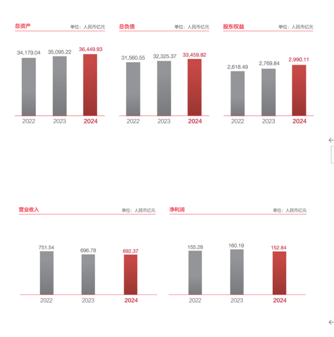 截至2024年末,广发银行总资产达3.64万亿元,其中,对公一般贷款净增超千亿元;各项存款余额 2.26万亿元,较年初增长3.47%,个人AUM达到9,238亿元,托管规模突破4万亿元。