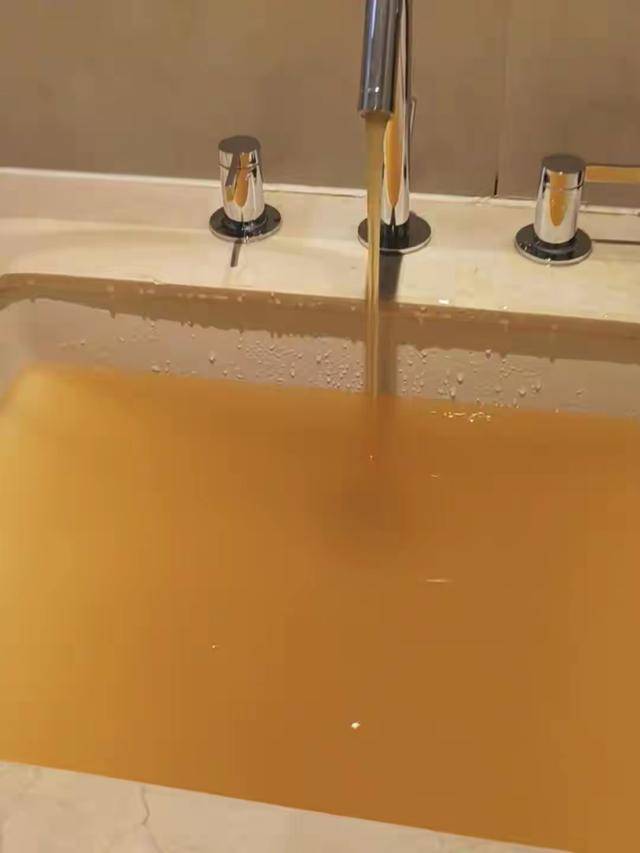 该网友表示,10月1日晚她回到房间准备洗澡,用压缩毛巾沾水,发现水呈黄色,没办法正常洗漱。直到2日早上8时许,水龙头里流出来的水依旧是黄色的。网友发布的视频显示,水龙头流出的水呈黄色,但未见明显杂质、异物。