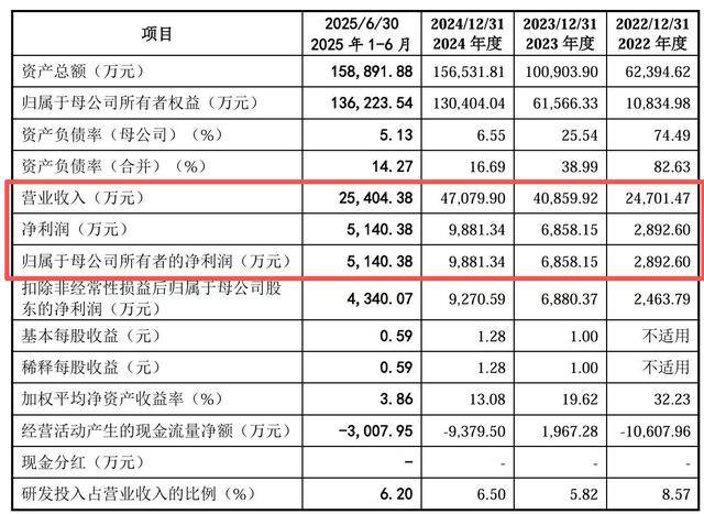 业绩方面,易加增材近年来的营收和利润增长较为稳健。2022年至2024年及2025年上半年(下称“报告期”),公司实现营业收入分别为2.47亿元、4.09亿元、4.71亿元、2.54亿元;归母净利润分别为2892.60万元、6858.15万元、9881.34万元、5140.38万元。