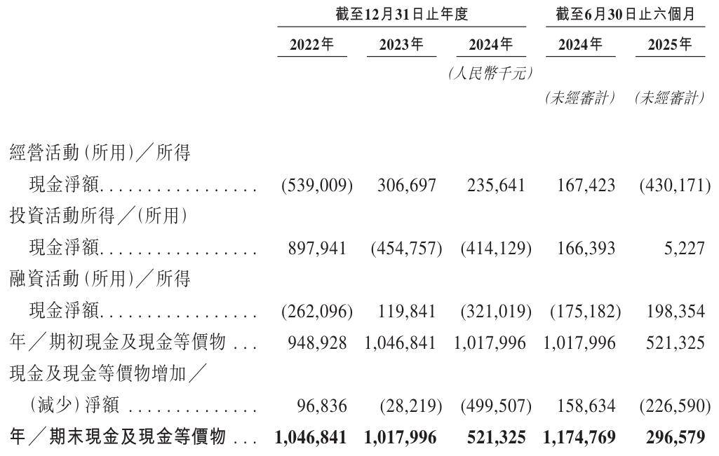 但需要注意的是,极米科技同期内经营活动产生的现金流量净额大幅减少,由2024年末的2.35亿元直接降至2025年6月末的-4.30亿元,出现现金流出的情况,且该公司截至6月末的现金及现金等价物仅剩2.97亿元。