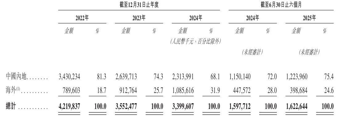 不过就收入规模和占比而言,极米科技的海外市场还有一定发展空间。报告期各期,该公司来自海外市场的收入占比分别为18.7%、25.7%、31.9%和24.6%,其中2025年上半年出现明显下滑,同比减少3.4个百分点。