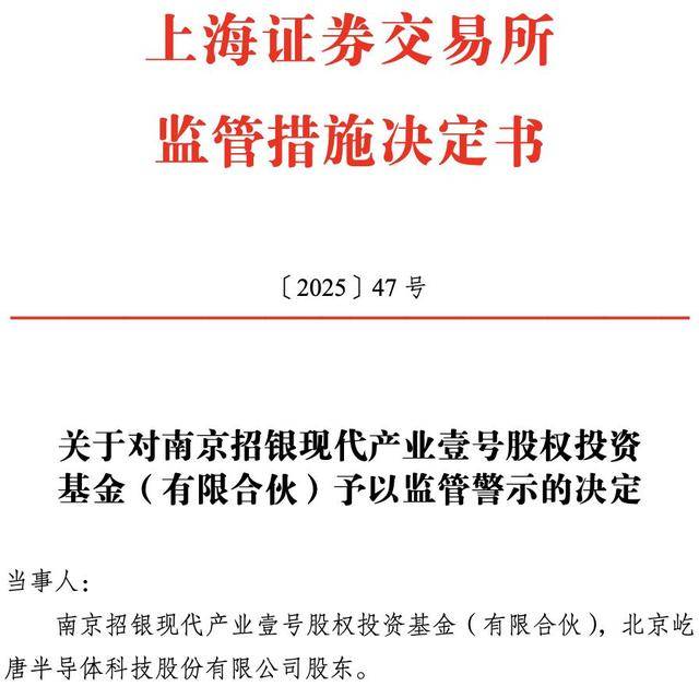 需要注意的是,今年8月,南京招银被监管警示,原因是17名员工“隐身”持股屹唐股份。
