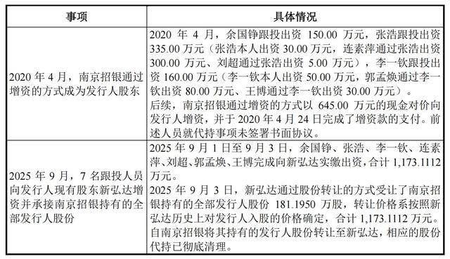 2025年9月,7名跟投人员向公司现有股东新弘达增资并承接南京招银持有的全部公司股份。